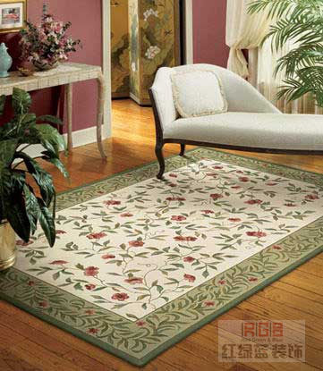 三是地毯背襯剝離強力:簇絨地毯的背面用膠乳粘有一層網(wǎng)格底布,在挑選該類地毯時,可用手將底布輕輕撕一撕,看看粘接力的程度,如粘接力不高,底布與毯體就易分離,這樣的地毯也不耐用。(紅綠藍裝飾)